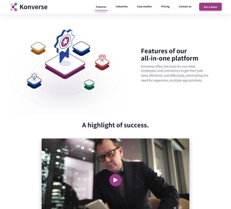 To communicate Konverse’s friendly yet professional vibe, we crafted custom animations and sleek illustrations.